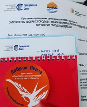 Сегодня 18.06.2018 г. мы принимали участие в семинаре «Содружество „добрых городов“: точки взаимодействия, развития и улучшения городской среды». Он проходит до 18.00 в Доме молодежи. Проходил он для некоммерческих организаций и городских сообществ, которые заинтересованы в развитии культуры благотворительности в целом и в увеличении комфортного пространства в своем регионе, городе или поселке. На семинар приехали 25 человек из Нижегородской, Ульяновской, Саратовской, Рязанской, Пензенской областей, Республики Мордовия, Пермского края.